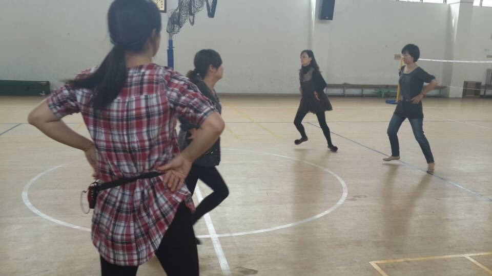 健身排舞比赛任务重、压力大,北幼茅春燕老师负责排练的排舞串烧《爱尔兰之魂》、《天使之心》、《摇摆时钟》。一个月的紧张排练中,老师们放弃休息时间,天天排练,熟悉舞步,展现了高尚的师德师风。