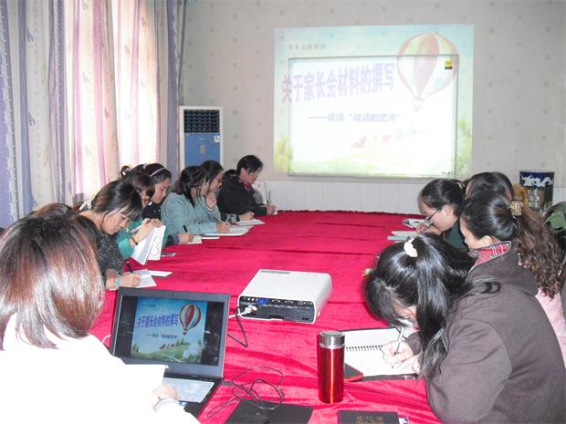 同样一个事物,既可以用只言片语将其言简意赅、淋漓尽致地表达出来,也可以用繁文缛节将其拖沓庸长、味如嚼蜡复述出来,这其中的关键就在于语言的运用。为了更好的实现在园教育与家庭教育的有机结合,同时也为了提高教师说话艺术的个人修养,10月29日中午,全体班主任教师在李园长的带领下进行了一场关于家长会材料撰写——谈谈“说话艺术”的培训活动。