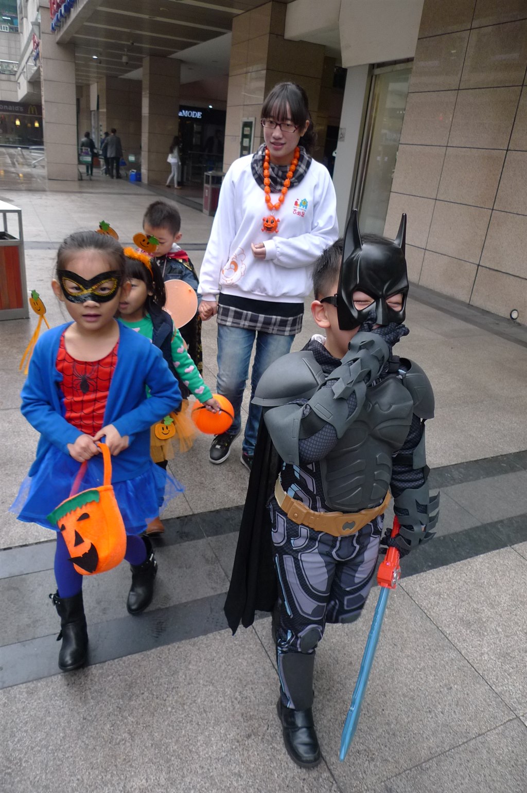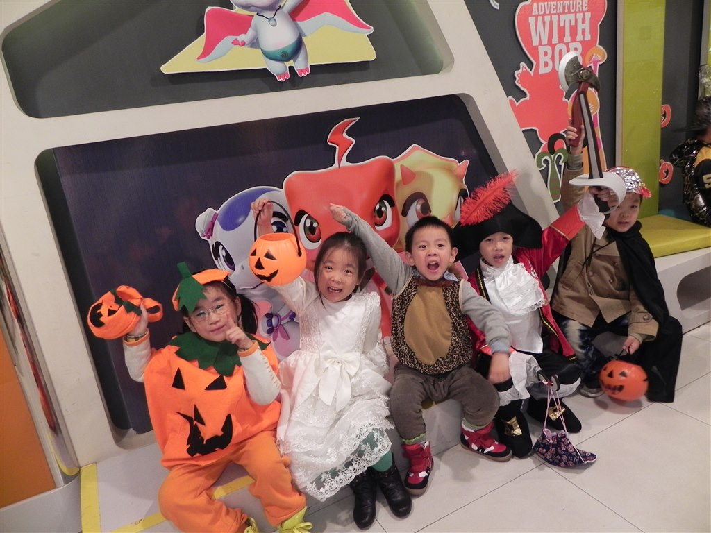 在家长的积极配合与老师的精心妆扮下,孩子们打扮一新——海盗、骑士、公主、女巫、幽灵等,“Wow,I’m a spider man”,“You’re a princess”,“I’m a witch now”……在泰富百货八楼童装部演绎了一场精彩刺激、别开生面活动。小朋友们唱着英文歌曲《Happy Halloween》《Trick or treat》……笑声、歌声、尖叫声交织在一起,汇聚成万圣节特有的乐章!