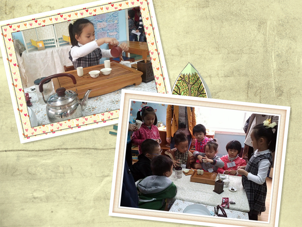 在此次娑幼的游戏节活动中,“茶文化”作为弘扬中国传统文化的一个重要组成部分被大力宣传,不仅有好吃好玩的“茶餐厅”、“茶叶店,更有好看又有趣的“茶博物馆”。在“茶博物馆”里我们的小小茶艺师为大家进行精彩的茶艺表演,小朋友都跃跃欲试地想来学一学,做一做。还有自己动手制作花茶书签,帮助小朋友们更直观的了解各种茶叶。在“茶博物馆”里,孩子们在游戏中,欣赏表演中了解到了更多有关中国茶文化的小知识,一个个都乐在其中。一直到游戏活动结束都不愿离开。