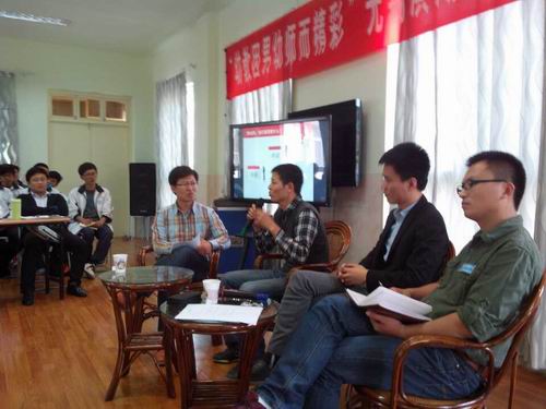 2013年11月1日,常州市新北区银河幼儿园举行“幼教因男幼师而精彩——常通男幼师联谊活动”,来自无锡滨湖区、南通如东、常州幼儿师范学校、新北区及周边区的男教师共计100多名,他们通过晨间观摩、课堂展示、沙龙等活动形式来展示幼儿园“另一半天”的阳刚与精彩。我园林浩老师参加了本次活动,在活动中林浩老师结合鲜活案例,以自己在教育一线的亲身感受,从理解(家庭)、尊重(幼儿园)、认同感(社会)三个方面跟大家分享了“男幼师,需要什么?”从而引起了全体男幼师的思考与共鸣,同时也得到滨湖区幼教教研员张皎红老师以及新北区银河幼儿园副园长王彦老师的认同。