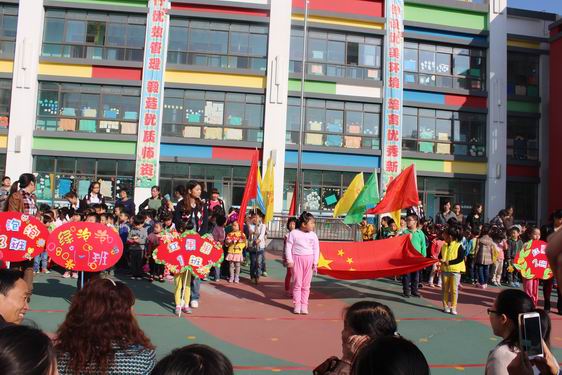 早上9:00,在操场上,所有家长和幼儿准时就位。随着运动员进行曲的响起,雄赳赳气昂昂的国旗队、彩旗队,活力漂亮的鲜花队,以及各班教师和幼儿组成的方阵都迈着整齐的步伐,精神抖擞,口号响亮,排着整齐的队伍陆续入场。接着,巢园长致开幕词,然后我们的老师和孩子们向家长进行了开场舞啦啦操的加油助威,每个小朋友都是那么的积极和喜悦,满面洋溢着童真的笑脸。为了开好本次运动会,我园教师群策群力,认真做好每项工作,每一个项目、每个动作无一不浸透着老师对孩子们的关心和爱护。孩子们也在教师的认真教导下,不怕苦不的不断练习,最后成就了孩子们完美的展示。