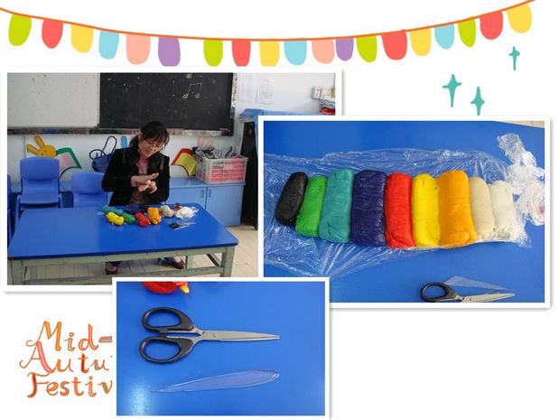 瞧!这次的家长助教是马翎凌的妈妈,她今天给孩子们带来的是中国的传统文化----面塑,孩子们的脸上充满了期待!马翎凌的妈妈首先展示了她制作的工具:各色彩色面团、剪刀和面塑刀,然后边操作边向孩子们细致的讲解着制作过程,五颜六色的面团随着她手指的揉、捏、压、点,一只憨态可鞠的熊猫就活灵活现地做好了。她还为孩子们制作了兔子、葡萄、胡萝卜等有趣的面塑作品,孩子们看了兴趣可浓啦!
