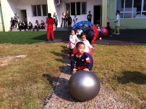 阳光明媚,秋高气爽。雕庄中心幼儿园的生态课题组成员齐聚运动场上,进行课题组的公开观摩活动。