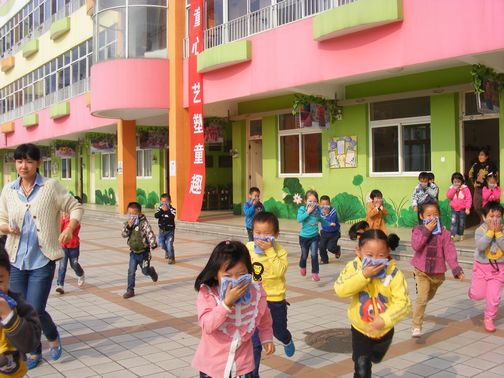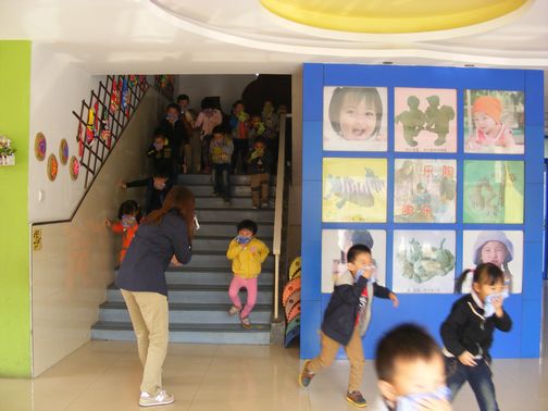 当日上午10点整,当疏散警报信号响起,疏散演练预案也立即启动,所有工作人员各就各位。正在参与班级活动的幼儿,在教师的组织下,紧张有序地进行疏散,用了4分钟师生全部撤离到安全地带。教师立刻清点人数,安抚幼儿;医生巡视,检查幼儿的情况。