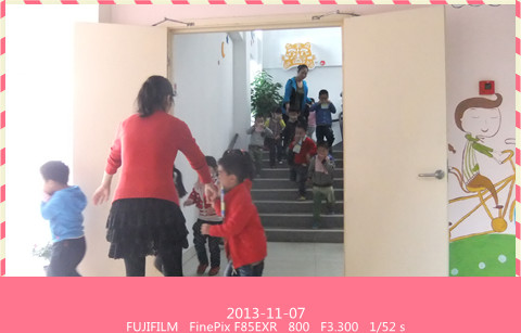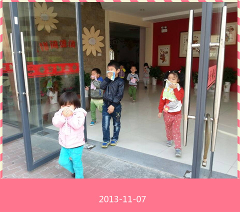 11月7日上午10:05分,随着一阵火警警报声的骤然响起,全园幼儿在教师的带领下迅速用湿毛巾捂住口鼻,弯腰伏身,从安全出口疏散出来,二、三楼的幼儿从楼梯扶手两侧一个跟一个地手扶栏杆下楼,紧急情况时他们不慌张、不推挤,有序地撤到了操场上,随后教师们立即清点人数,向安全员报告人数,从警报声响起到全体幼儿安全撤离现场,仅仅用了3分50秒时间,消防演习圆满结束。