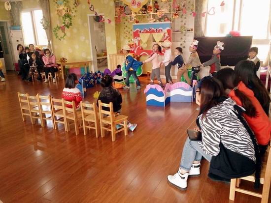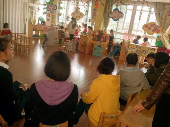 近日,大风车幼儿园进行了区域游戏活动的园内部观摩学习活动,教师们看老师作为游戏过程中的观察者,如何关注孩子在游戏过程中的言行举止,分析和思考了解孩子的需要、意愿、困难和情绪体验,并以此作为自己指导游戏的依据,满足孩子的游戏需要,推进游戏的发展。在随后的交流中,巢园长带领观摩教师对游戏环境的创设、废旧材料的利用及教师在幼儿游戏中的支持与引导进行了评价:这样的环境创设方式不仅充分利用了资源,还体现了我园教师在工作生活中一种环保理念,更将这种环保绿色的理念以潜移默化的形式引导着孩子和家长。教师们对其中的细节提出了自己的建议。