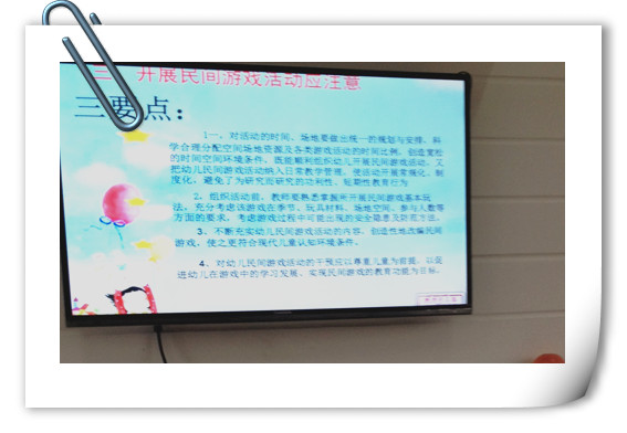 “随时学习、理念更新、运用实践”这种思想已经根植于茶山中心幼儿园的每位教师的脑海中。近期,根据省级课题研究计划,由课题组成员姚雯燕老师组织大家学习《民间游戏与教育活动的整合》一文,让参与的老师带着问题深入学、着眼实践灵活学,做到用心学习、用心思考、用心运用。