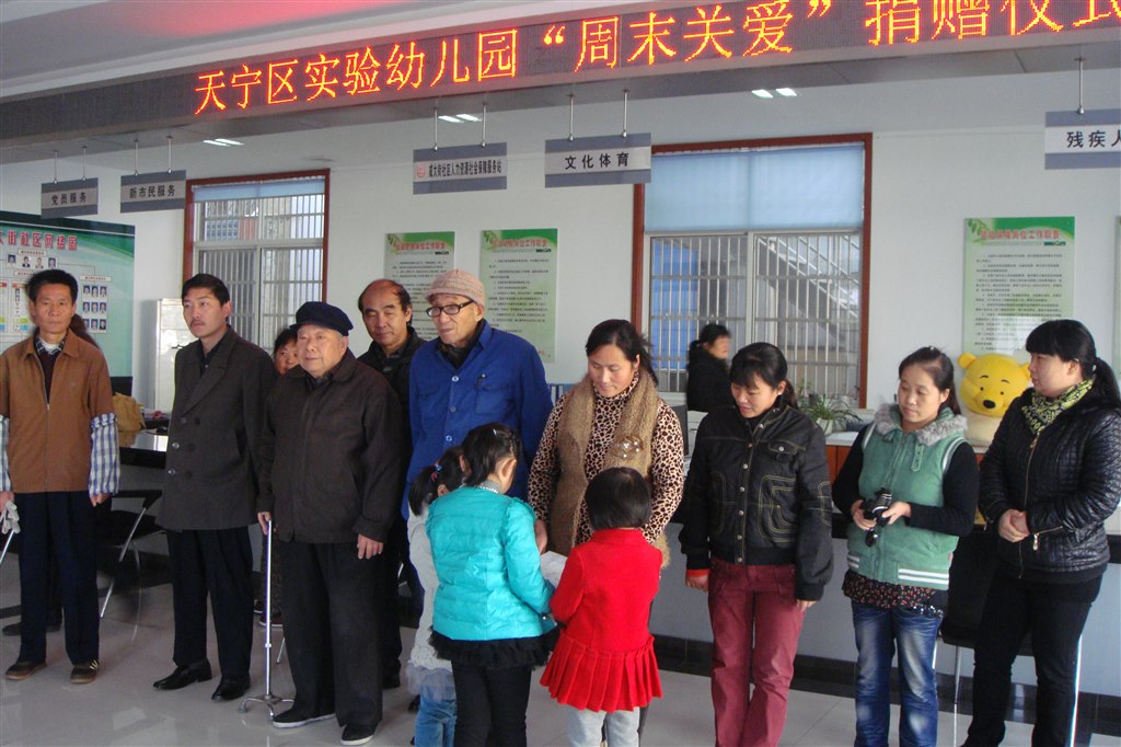 近日,天宁区实验幼儿园走进社区进行了“周末关爱”捐赠活动。在邱霞副园长的带领下,三位家长及幼儿代表走进戚墅堰街道社区,为十组贫困家庭献上了自己的一份爱心。
