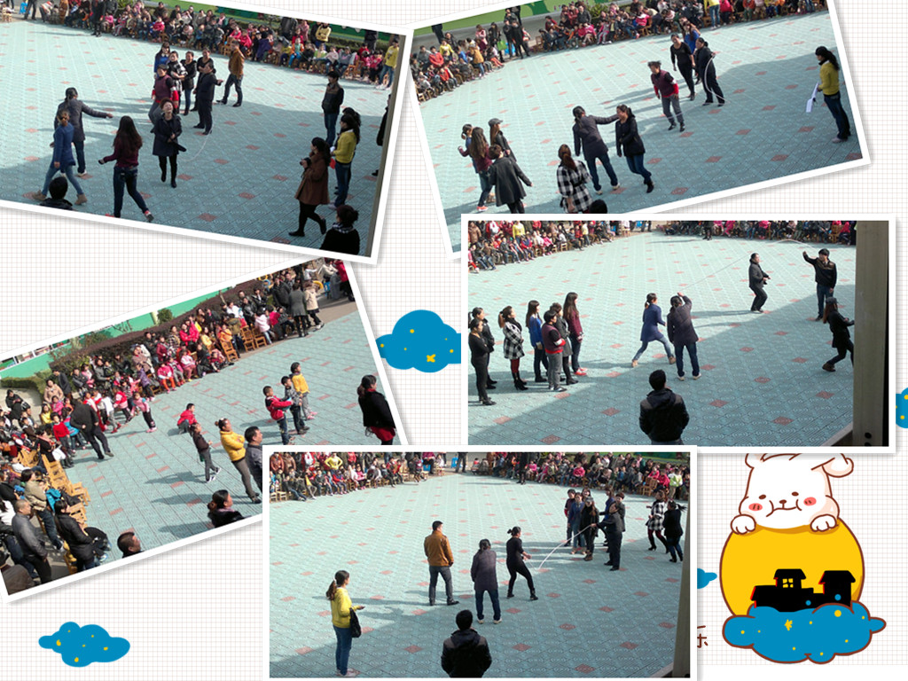 跳长绳是民间老游戏中的精典游戏,家长跳长绳是家园沟通的桥梁。近几年来,茶山中心幼儿园每年的亲子运动会都融入了民间游戏内容,凸显了该园的特色建设,既锻炼了身体,又增进了感情,促进幼儿和谐发展。很多家长说:“这些游戏小时侯经常玩,太有趣了!感觉自己也回到了童年!”(施亚琴)
