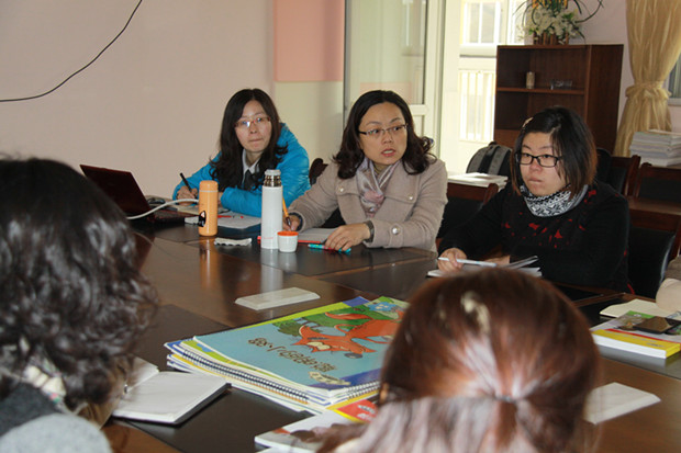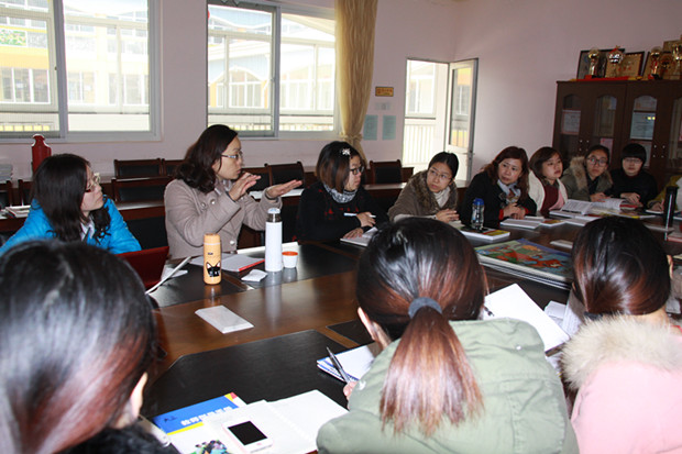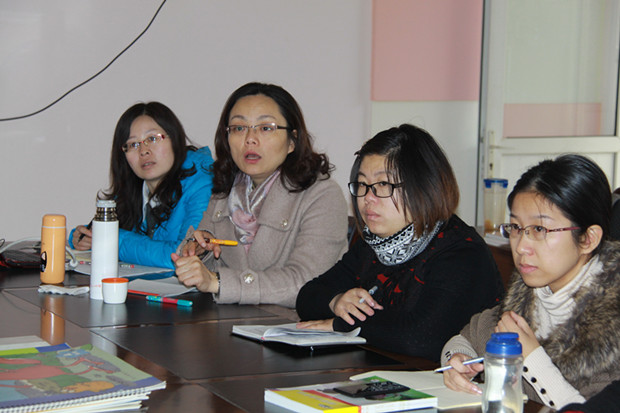 我园是一所年轻化的园所,新教师较多,而新教师对读本、教学流程以及课时的调配都感到比较陌生和困惑。就以上问题,今天上午来自弈阳教育的杨老师、罗老师和我园各位老师齐聚一堂,一起进行了交流和探讨。