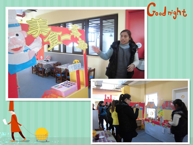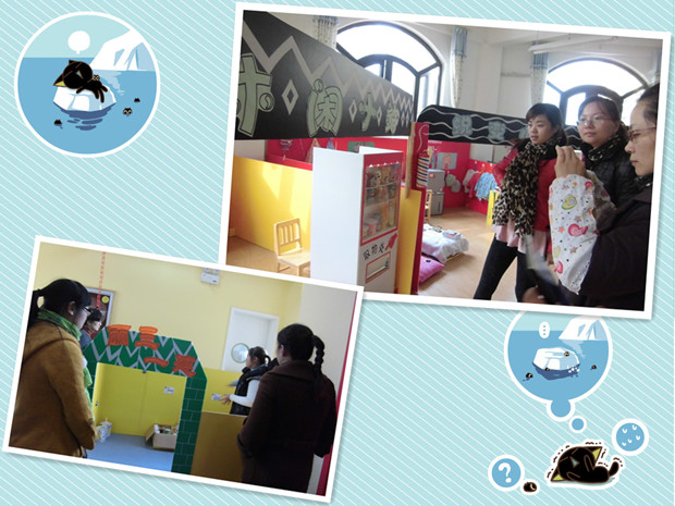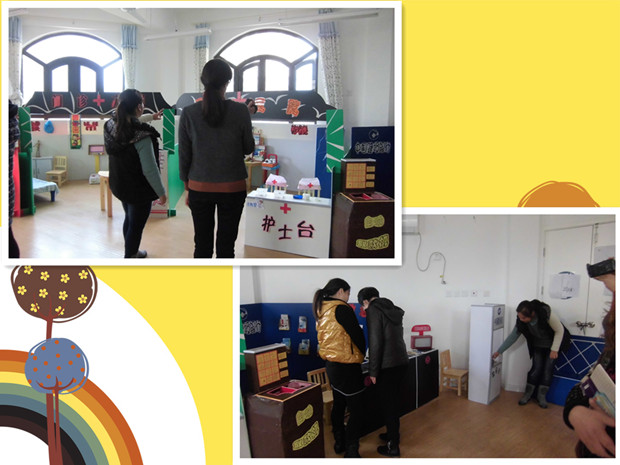 在观摩现场,教师们看到了生活化、趣味化的游戏环境:有“美食一条街”、“建筑工地”、“建设银行”、“爱心医院”、“蜕变小屋”等。还看到了利用废旧材料制作了丰富多元、有层次的游戏道具:有“自动取款机”、“邮政邮箱”、“消防车”、“自助贩卖机”等。教师们观摩了“萌宝角色馆”后,都露出了惊讶的表情,纷纷说孩子们在这样的环境里都会乐意玩,善于玩,玩出精彩的童年。