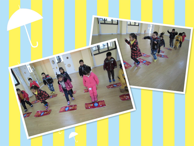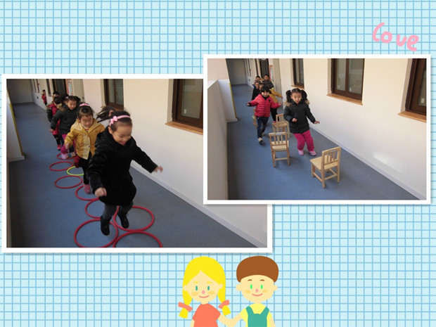 为此,大班年级组首先商量制定了一套室内活动方案:按各年龄阶段在原先开展室内体锻的基础上根据本班孩子特点、运动量要求和教室空间情况都设计了新的体锻内容。在宽敞的多功能大厅内,孩子们在老师的指导下,带劲地玩着“小袋鼠跳跳”的游戏。在走廊里老师巧妙利用椅子做障碍,而孩子们正高兴的玩着“你追我赶”。还有的班级组织孩子们进行集体室内体育游戏,如:打野鸭、占圈……在室内,孩子们也依旧玩得情绪高涨。