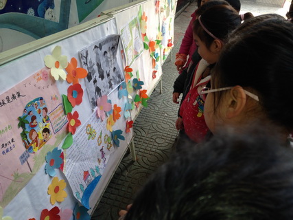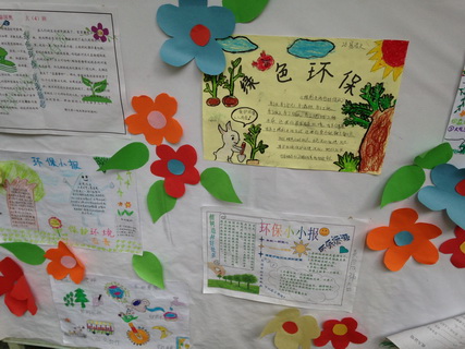 孩子们还携手老师、爸爸妈妈一起布置了环境保护展板,相互交流展板内容,老师也认真地为孩子们讲解。当看到因环境污染后一些触目惊心的现状,孩子们眉头紧锁,担心的神情溢于言表。伴随着“河水不再清澈,天空不再蔚蓝”的画面,老师引导孩子们要从点滴的小事做起,节能减排,绿色消费。孩子们争着举起一双双小手争着说:“下次,我要叫妈妈不看电脑的时候要把电脑关了,不能浪费,电脑也排除二氧化碳。”“明天我要爸爸骑自行车上班。”“下次我再也不会忘记关受龙头了。”孩子们你一言我一语的议论着,这背后隐藏着孩子们保护地球家园的美好心愿。