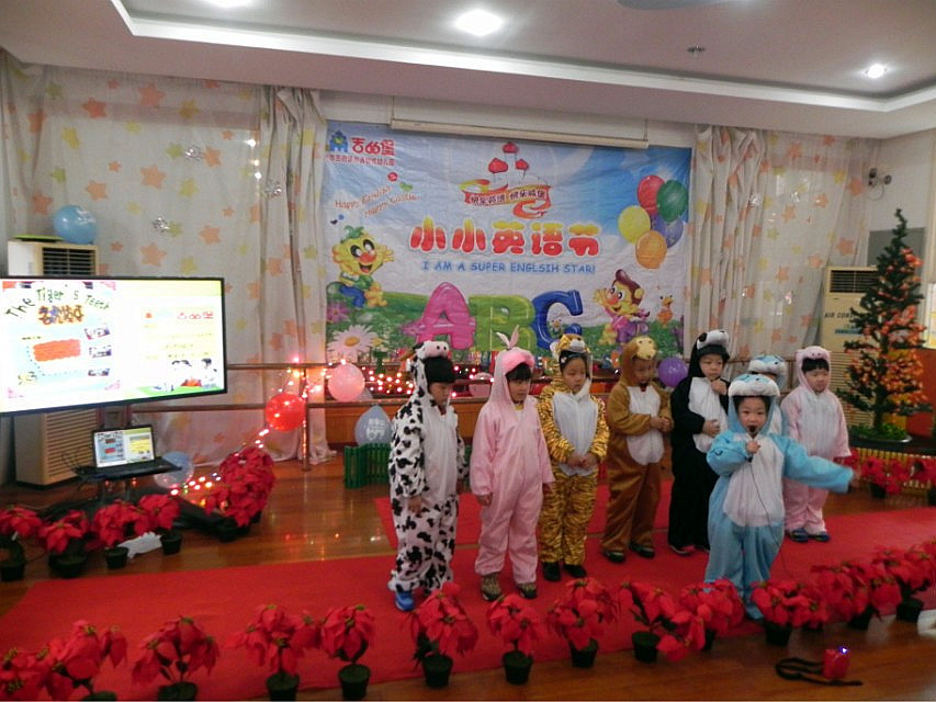 《Uncle wolf’s braised chicken》、《Ugly duckling 》、《Mermaid Princess》等十三个英文童话剧的主要演员,伴随着一口流利的英语介绍纷纷登场。剧中美丽动人的美人鱼、令人痛恶的大灰狼、凶猛无比的大老虎、聪明可爱的小鸡等角色,给在场的观众留下了深刻的印象,同时也激发起了观众们对下期童话表演的期待。 为期一个月的小小英语节拉开了帷幕,我们期待着这些精彩的童话剧能早日呈现在我们面前!