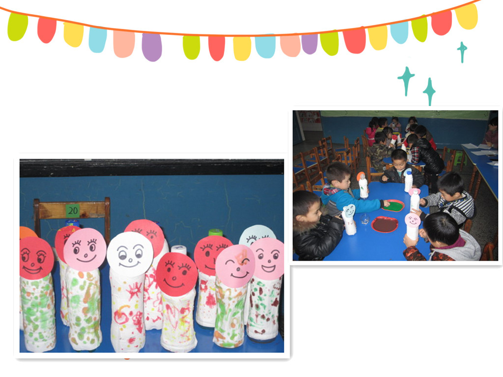通过集体备课共同设计出美术活动《瓶宝宝穿新衣》,由新教师马丹在进行了“一研”活动的展示。“一研”活动结束后教师进行研讨,这是一种基于实践反思的研讨式活动。首先由新教师谈谈自己在活动中存在的问题和反思,随后参与研讨的教师共同分析,进一步完善教案和调整活动中的环节和过程。然后再由另一位老师根据重新修改好的活动再次上课。继续针对活动中环节和不适合幼儿细节精心修改教案,随后再由教师进行公开展示。
