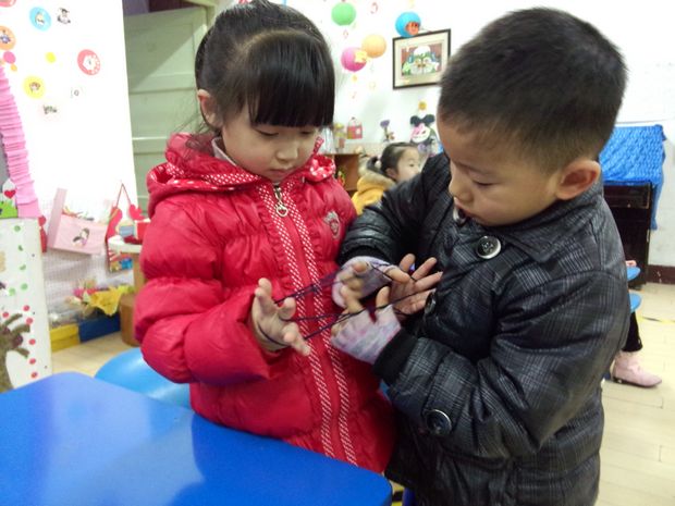 近来,我班一日活动中多了一道亮丽的风景:孩子们有的欢快地在一起跳房子;有的低着头神情专注地挑小棒;有的三三两两地玩翻绳;有的则在玩两人三足……
