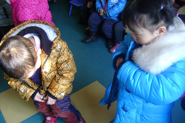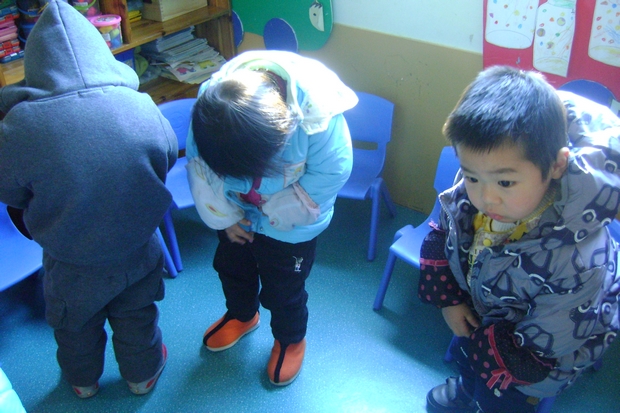 幼儿生活自理能力的形成有助于培养孩子的责任感、自信心及处理问题的能力,对幼儿今后的生活有着深远的意义。进入冬季,幼儿的衣服相应增加了,有能力强的幼儿起床后是自己穿衣服,但能力弱的幼儿反而等着老师为他穿衣服,这样孩子们生活自理能力方面的差距也随之拉开了。为了提高孩子的自我服务能力,我们要求家长朋友们与我们同步帮宝宝学会穿脱简单的衣服和鞋子。