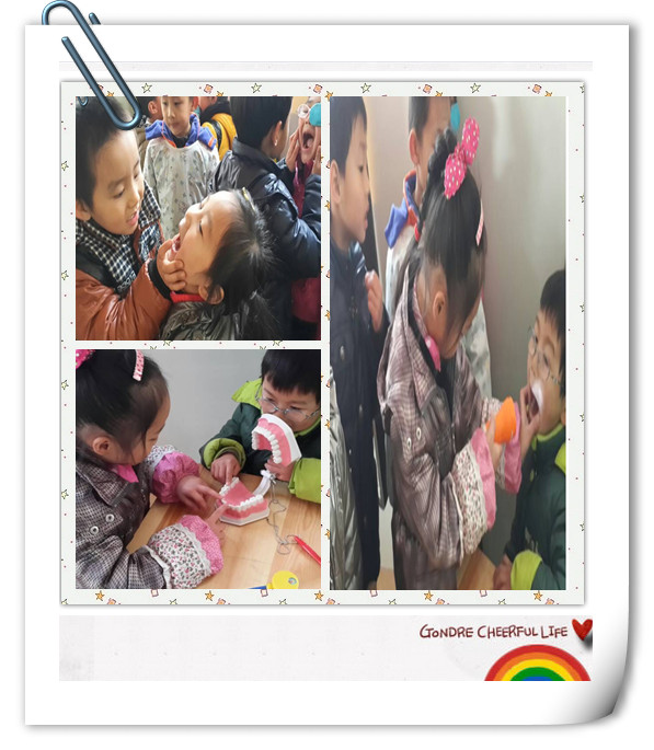 活动以游戏的形式,引导孩子们相互观察,找找哪些小朋友换牙了,哪些小朋友还没有换牙;通过谈话、观看图片、倾听故事,让孩子知道换牙是一种正常现象,没什么可怕,换牙说明小朋友长大了;利用一些形象、直观的视频让孩子们了解一些不良习惯对换牙的影响,从而引导他们在换牙时注意养成不用舌头舔,不啃咬手指甲、铅笔、不咬嘴唇、不用手摸等良好的习惯。活动中,老师们还给孩子介绍了一些保护牙齿的好方法,比如:经常检查牙齿、饭后漱口、养成早晚刷牙的好习惯、选择合适的牙刷和牙膏、学会用正确的方法刷牙、不咬硬物、不多吃糖,平时多吃含纤维食物,有助于牙齿自洁,促进颌骨及颌面部的生长发育等。