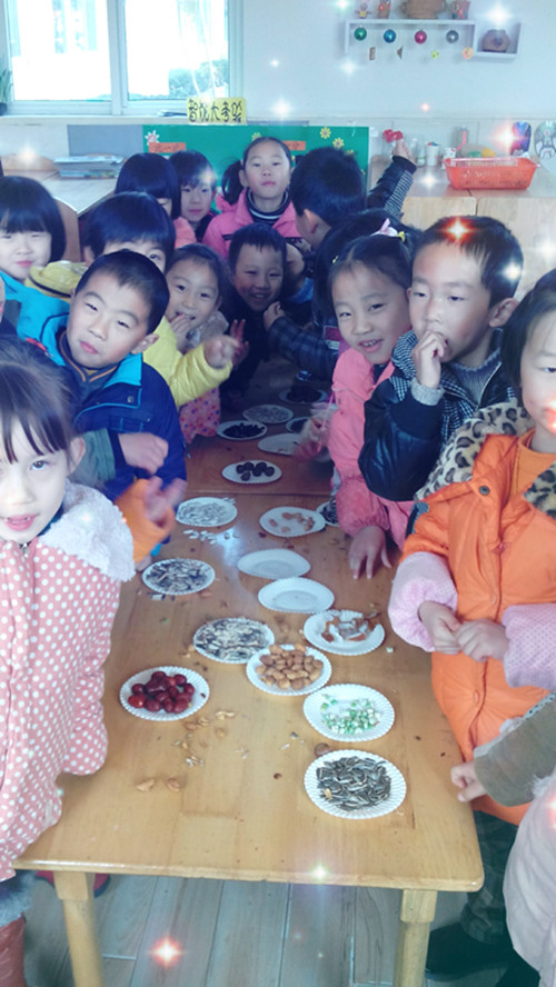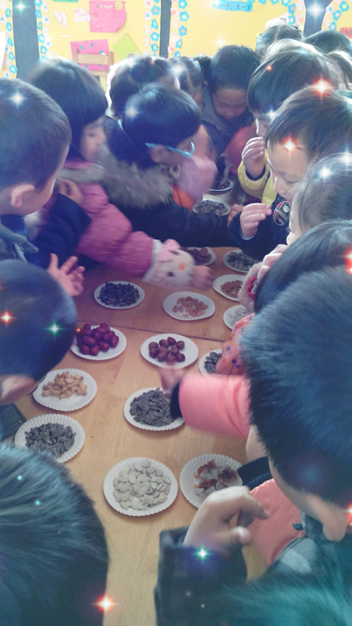 近日红东幼儿园大班举办了一次干果品尝会。在前段时间《好吃的干果》活动中观察了一些干果的主要特征,知道了一些干果的名称及作用,之后几位小朋友自发提议要带些干果跟小朋友们一起分享,一起尝尝各种干果的味道。于是老师就组织了这次干果品尝会。