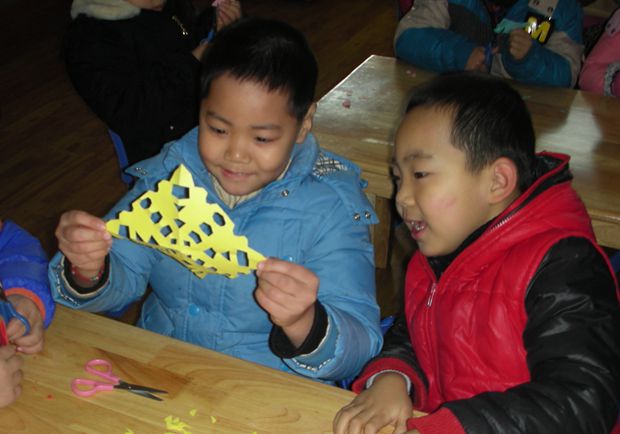 窗花是中国剪纸艺术中的一种,窗花的对称、形态各异的特征、生动有趣的美深深吸引了幼儿。活动中,在老师的认真教授讲解和细心指导下,孩子们通过眼睛的观察、大脑的构思,双手的剪裁等一系列步骤,剪剪玩玩,在不断寻找乐趣中,动脑、动手,剪出了花样各异的窗花,给幼儿带来很多的乐趣。孩子们在完成作品的同时,使大脑得到了开发与提升并体验到了创作的乐趣,增强了自信心与动手制作的积极性。