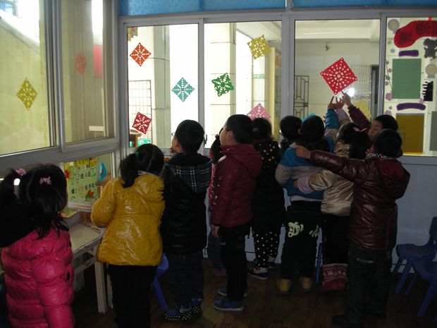 活动后,老师和孩子们用这些自己亲手制作的美丽窗花装饰了教室,看到自己的作品布置在窗户上,孩子们别提有多开心了,互相炫耀着自己的窗花是最漂亮的。窗花这一小小的彩纸在美化装扮窗户的同时,使我们的教室环境增添了“过年”的喜气,更让孩子们感受到了浓浓的新年节日气氛!