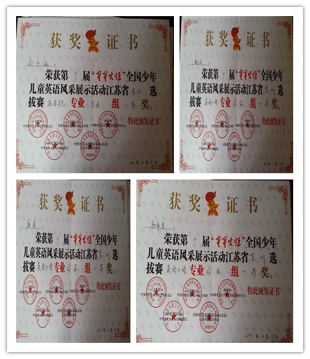近日,从第十届“星星火炬”全国少年儿童英语风采展示活动常州赛区组委会传来捷报,常州吉的堡双语智优幼儿园参赛的29名幼儿中,喜获4名一等奖、10名二等奖、11名三等奖,4名风采奖。