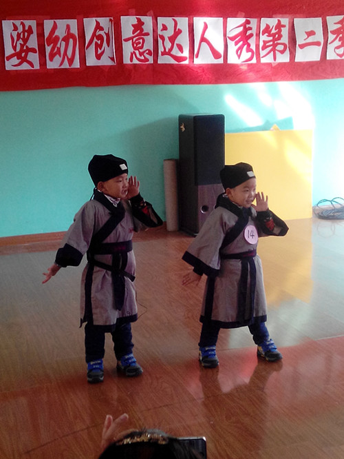 此次达人秀活动共分为亲子达人秀、语言达人秀、才艺达人秀、运动达人秀4类,形式新颖、充满童趣。亲子达人秀中“爸爸去哪儿、爷爷打靶归来、妈咪煽情乐--”,语言达人秀里“故事格外动人、常州宁说常州话--”,才艺达人秀中“吉他提亲逗乐、古今中外特色--”,运动达人秀里“飞人飞轮乐趣、器械神人多彩--”琳琅满目。看得出娑幼家长及师生都经过了认真的训练,充分体现了家校间的团结协作精神。