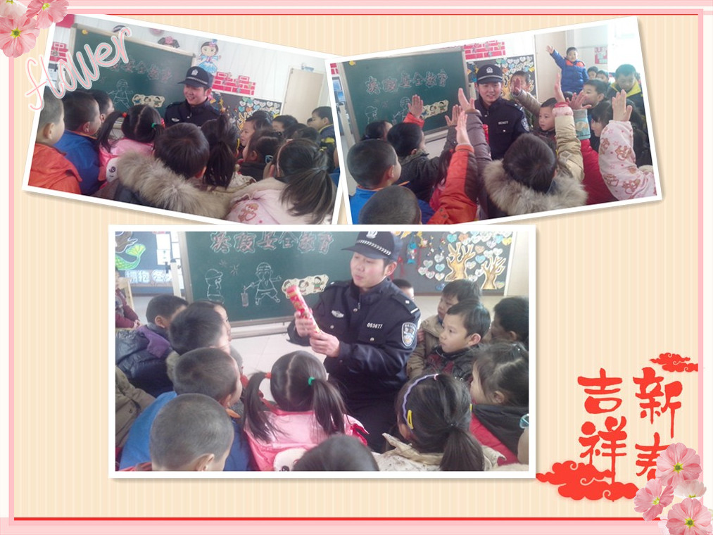 在寒假即将来临之际,2014年1月10日上午,兰陵派出所的邵警官以“寒假安全教育”活动为契机,走进我们茶山中心幼儿园,向幼儿讲解和宣传安全常识,让幼儿度过一个安全、快乐的假期。