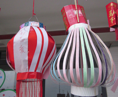 生活中到处都充满了创意,几张普通报纸、一个废弃的塑料盒、几个色彩斑斓的糕点盒、闲置的空玩具盒、大大小小形状各异的瓶瓶罐罐……这些看似生活中丢弃的废品,爸爸妈妈和孩子们发挥聪明才智,让这些不起眼的材料成为精美喜庆的灯笼。小小灯笼,向我们传递的是一份生活的创意,一声节日的问候。在亲子制作灯笼的互动中,更表达了家长和孩子对环保的推崇支持和对生活的热爱。整个班级被包围在喜庆祥和、温暖欢乐的灯海里。