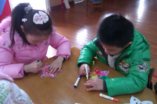 活动前,孩子们做了许多准备工作。他们从家里带来了各种各样的窗花,诸如“喜鹊登梅”、“二龙戏珠”、“莲年有鱼”、“榴开百籽”等,当孩子们看到这么多精致的窗花后,就迫不及待地想要一试身手。看,他们有的正在凝神观察,有的正在专心致志地折纸,还有的正在小心翼翼地修剪。不一会儿,孩子们手里那一张张普普通通的蜡光纸,就摇身变成了一棵课绿树、一朵朵红花、一片片雪花……。孩子们拿着自己的杰作,不停地与小伙伴们探讨着窗花的剪法,分享着成功的快乐。