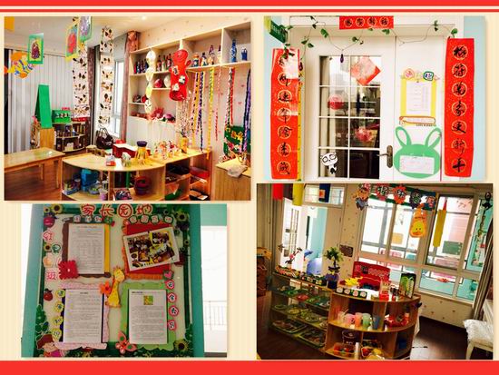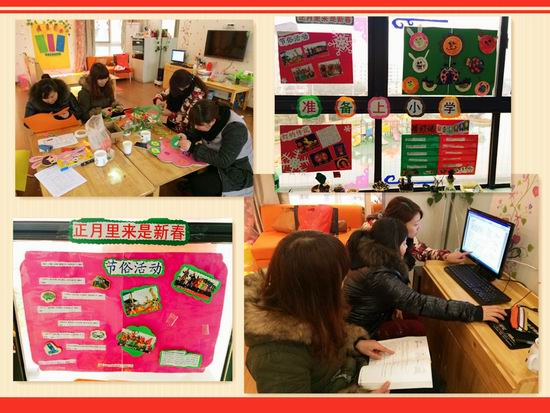 大班的老师们为了让孩子们对中国新年多一些感受,多一些文化的浸润,创设了富有中国年味的走廊环境和班级环境、设计了一系列丰富多彩的的主题活动。每年都有新春主题,每年都要推陈出新,今年的环境怎么来布置呢?老师们一个上午就搜集到了许多的资料,大家讨论实践得好不热闹,将所有可用的材料都拿来试一试、比一比,力求达到最完美的效果。漂亮的环境有了,老师们又修改制定了新的网络图和一周周计划,并计划起许多活动——给大家拜年、聊聊你的新春活动、说说你知道的新春民俗、包汤圆、吃春卷、舞龙舞狮、拉兔子灯、猜灯谜……接二连三的活动,孩子们一定很期待吧!