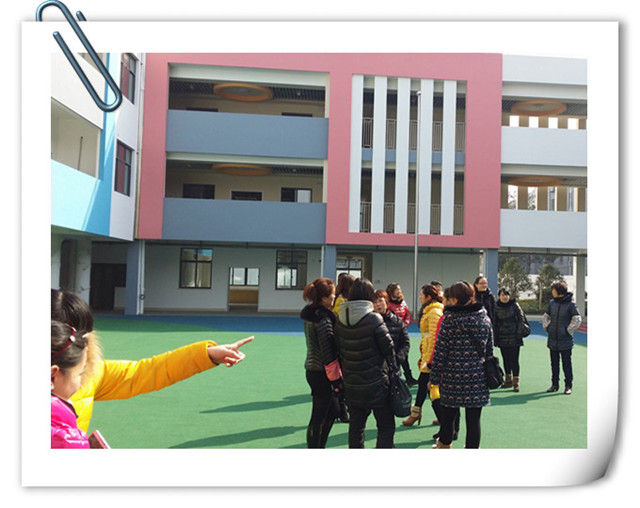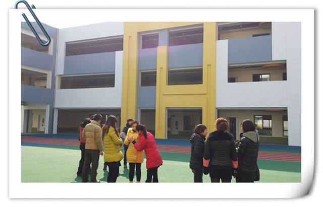 新园按照《江苏省优质幼儿园评估标准》进行,六轨布局,总体设计既体现现代化的办园思想,又展现了陶冶情操的审美功能,具有全方位的环境育人功效;既以人为本,又强调人与环境的融合,合理设计了空间。在新园即将交付使用之际,组织全园老师前往新园进行参观。