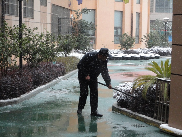 漫天飞舞的雪花,让常州城成为洁白的世界,也给孩子们带来了上学的不便,三之三金梅幼儿园在2月18日早上6点半全部启动雪天安全预案:1、通过网络、短信向家长告知雪天安全事项;2、与家长沟通校车停运事宜。3、校门口做好防滑措施。4、楼顶、园内树木做好清理积雪工作。