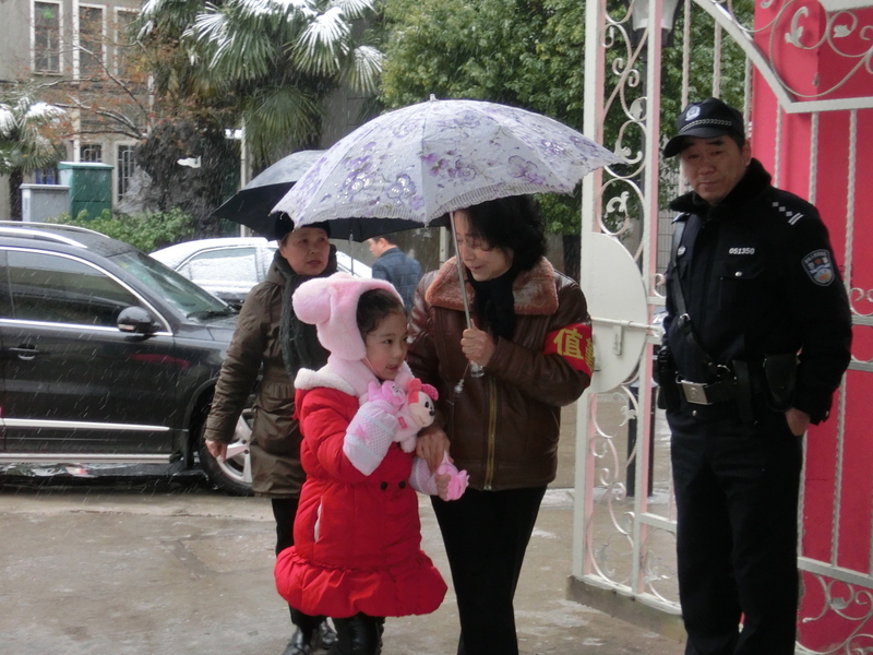 现在,每天上学和放学时间,艺术幼儿园校门口就会出现保安、值班老师、家长护卫队3支校园安全警戒岗,为校园安全筑起铜墙铁壁。