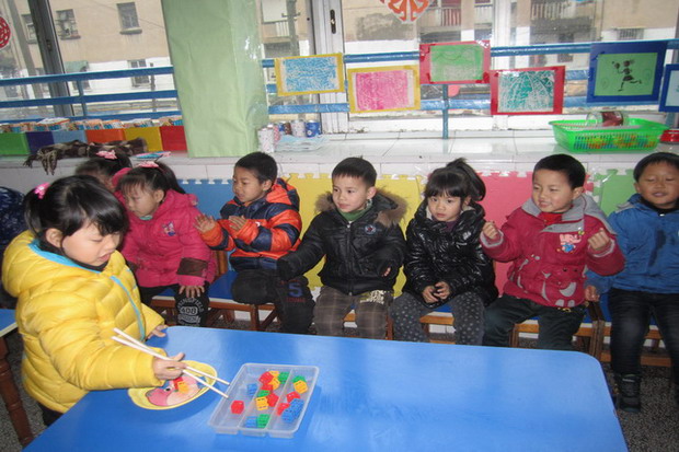 这样的活动教师给了孩子充足的锻炼机会,活动前期孩子们在老师和家长的引导下学会了正确的使用筷子的方法,有的小朋友虽然速度比别人慢了一点,但他非常认真,不慌不忙地进行比赛。