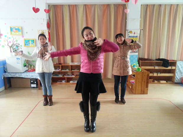 在小班早操编排活动中,不管是选音乐方面、还是编排学习方面,都凝聚了老师们的智慧与汗水。为了达到动作的统一、到位,小