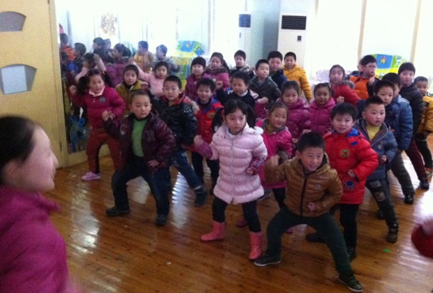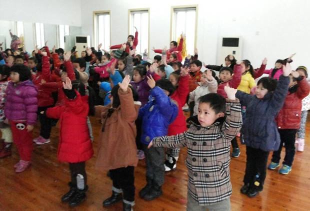 本学期,大班级部本着加强幼儿体质,并让孩子们逐步养成坚强,勇敢的意志,编排了以中国功夫为主,展示中国风的晨间活动。但连绵的阴雨天气,让我们的孩子无法到户外进行活动,孩子们学到的新“功夫”也无法展示。于是,本周我们大班老师带着孩子们来到音体室进行练习活动。