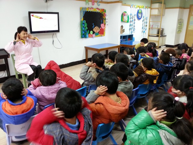 瞧!保教老师走进课堂,运用形象的幻灯片向孩子们介绍耳朵的结构,告诉孩子们耳朵是人体的一个娇嫩的器官,大家一定要仔细保护好自己的耳朵。还用生动有趣的游戏,引导孩子们说出生活中点点滴滴爱护耳朵的办法,教育孩子们关爱听力残疾儿童,与孩子们形成爱护耳朵的共识。 通过本次活动,大家都对自己的耳朵有了更深的认识,以后也会更加知道保护耳朵的重要性了。孩子们表示:“要好好保护自己的耳朵,不在别人耳边大声说话。好好对待自己身上的每个部位。”并表示在日常生活中互相监督,好好保护自己的小耳朵。