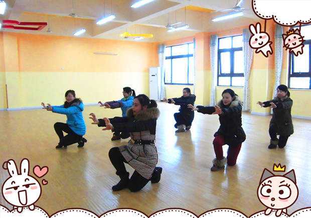 近日,大班年级组老师利用中午时间开展新的武术套路编排。老师们“劳其筋骨”,一次次地听着口令,一次次地跟着节奏虚心学习,认真磨练每一个武术动作,研究每一个武术套路的精髓。终于,一套崭新的武术套路拳法新鲜出炉,老师们脸上露出了欣慰的笑容。