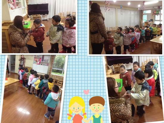 托班宝宝年幼、天真,规则意识还处于起始阶段,缺乏秩序感,所以他们在集体活动中经常会不由自主地打破一些秩序,排队时就显得非常明显。每到排队时宝宝总是一个劲地往前面挤,于是常常是宝宝被挤到一片,排一个队拉了这个跑了那个,好不容易将宝宝排好了,还没走出去一会,队伍又乱掉了,只得停下来重新一次次排队。针对这一情况,大风车幼儿园小托班的老师们就通过儿歌、故事、游戏等形式,积极的对孩子们开展起了文明礼仪教育活动。