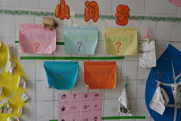 大班主题墙“小问号”,教师让幼儿用绘画的方式提出自己的问题,并鼓励孩子找一找,通过“我的答案”分享和展示孩子们的经验;中班主题墙“你快乐 我快乐”,孩子们用自己的体验布置了“我的情绪屋”、画笔记录身边的快乐事情;小班的主题墙“亲亲热热一家人”,从孩子收集自己的全家福开始,孩子们为爸爸设计漂亮领带等等有趣的活动贯穿了整个主题墙。
