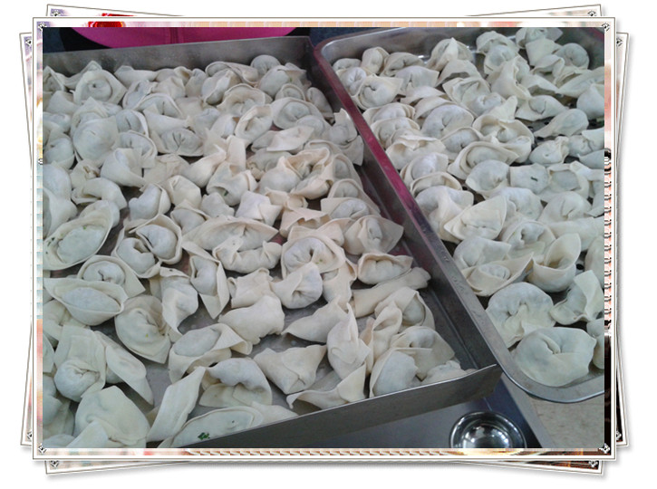 一大早,幼儿园就为孩子和家长们准备好了美味的馅和皮。孩子们在老师和家长的帮助下洗干净了自己的小手,安静地坐在座位上等待着。家委会成员和热心家长则一起上阵,帮助老师把桌布铺好,各项准备工作都一齐到位。一声令下,包馄饨比赛开始了。孩子们在家长的帮助下,小心翼翼地开始包起自己人生中的第一个馄饨。教室里洋溢着欢声笑语。一会儿,一个个形态各异憨态可掬的馄饨出炉了。孩子们看着自己的作品一个个兴奋不已。