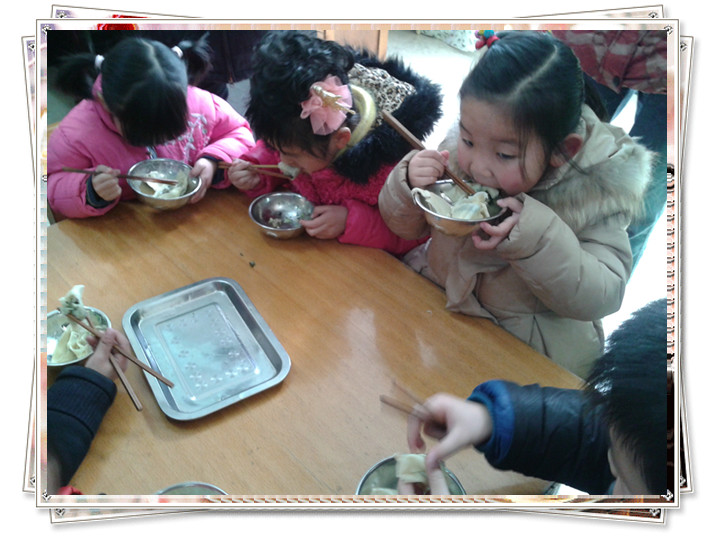 在品尝自己的劳动成果时,孩子们都纷纷把第一个馄饨送到妈妈嘴边,做一个孝顺的宝贝。