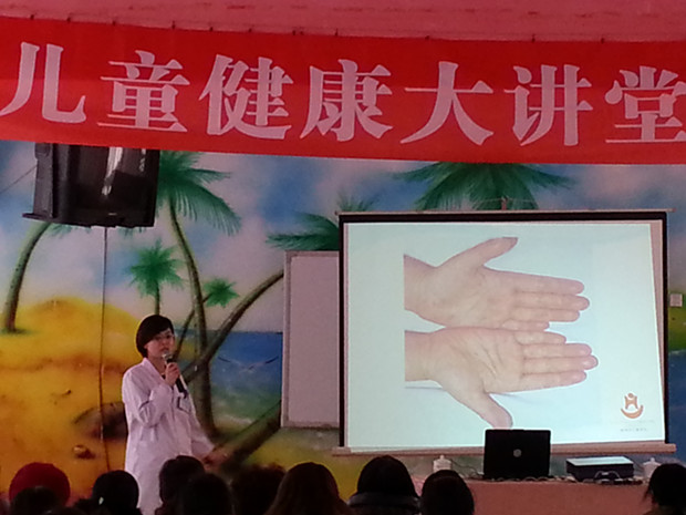 想做好预防工作,先要了解幼儿好发哪些传染病,讲座开始,上官医生首先给家长介绍了常州学龄前幼儿的高发传染病,分别是手足口病、水痘、流行性腮腺炎、猩红热等,而手足口病的发生率占所有传染病中的80%。随后,上官医生将传染病的发病原因、临床特征和传播途径逐一告诉家长。例如手足口病的主要临床特征是手心、脚心及臀部出现米粒大小的疱疹,口腔内有溃疡,疼痛明显,该疾病可通过肠道和空气传播。家长了解了传染病的基本知识后,上官医生重点讲解了传染病的防控方法。在传染病的高发季节,开窗通风、物品清洁和勤洗手是预防的三大法宝,呼吸道传染病主要通过空气和飞沫传播,因此家长应给幼儿创造一个空气流通好的生活环境,肠道传染病主要通过粪口传播,因此家长还要教育幼儿养成良好的卫生习惯,督促幼儿外出回家、饭前便后、打喷嚏以及接触过分泌物手一定要用洗手液和流动水洗手,上官医生强调,洗手方法是否规范、时间是否合理对细菌和病毒的清除很重要,正确的洗手可以让病毒无法通过手进入口和肠道内。另外,家长也要经常洗晒幼儿的衣物、被单、玩具和图书等物品。家长不仅要做好幼儿在家的卫生,还要配合幼儿园做好预防工作,每天清晨检查幼儿身体有无不适和异常,既为了自己幼儿的健康,也为其他幼儿的健康着想。