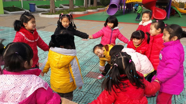 2014年3月17日,晨间活动和往常一样,各班按表到相应的场地进行晨间户外活动中。活动内容可以说是丰富多彩、趣味十足。各班教师根据班里孩子的年龄特点、能力差异等,相应安排趣味性较强的民间游戏,如踢毽子,年龄小的幼儿在毽子上系一根绳子,用手拎着踢;年龄大的幼儿则直接踢,还能踢出许多花样来。又如,安排运动量较大,能够促进幼儿大肌肉发展的民间游戏,如“骑马”“贴烧饼”“切西瓜”等。在小型分散活动中,安排一些活动量适宜,能够培养幼儿交往、合作精神的民间游戏,如“瞎子摸拐子”“跳皮筋”“套圈”等。在过度环节,那些不受时间、场地限制、玩具携带方便、容易收拾整理的民间游戏,“看谁站得稳”“玩沙包”等,深受孩子们的喜爱,最大限度的减少了幼儿等待时间,使得各个环节过度自然,活而不乱。