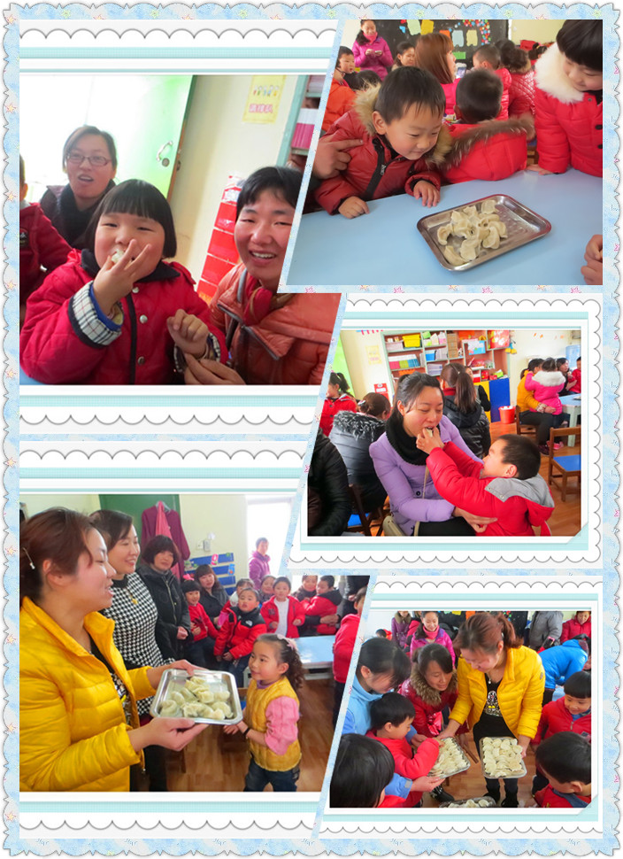 瞧,很为面点师的张薇薇妈妈精心设计了一堂实践课,组织家长和孩子们一起“包饺子”,营造一种和谐、喜庆、温馨的家庭氛围,整个活动井然有序。在活动中家长手把手地教幼儿包饺子,不但提高了幼儿的生活服务能力,也培养幼儿爱劳动的好习惯。让孩子们体验劳动的快乐,体会父母的辛苦,并把自己包好的饺子煮熟后,亲手喂给爸爸、妈妈吃,让孩子有颗“感恩的心”。