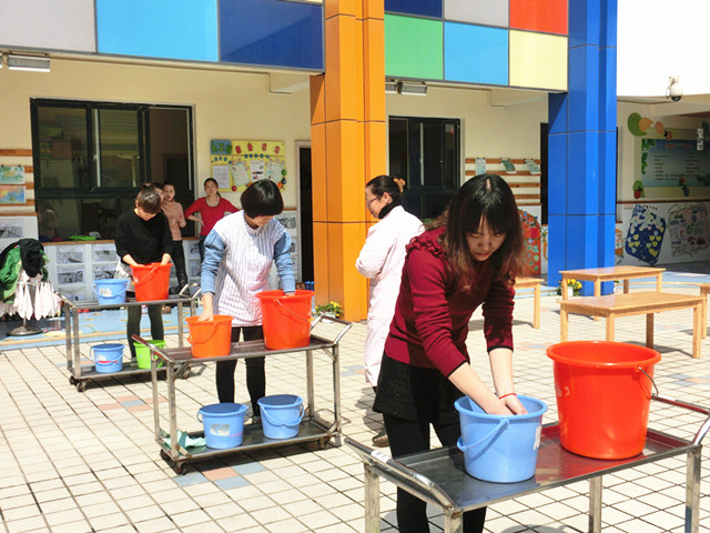 幼儿园是幼儿学习和生活的重要场所,“保教结合,教养并重”是幼儿园工作的核心。为保障幼儿健康成长,艺术幼儿园全体教师今天中午在大操场上举行了保育技能大练兵。