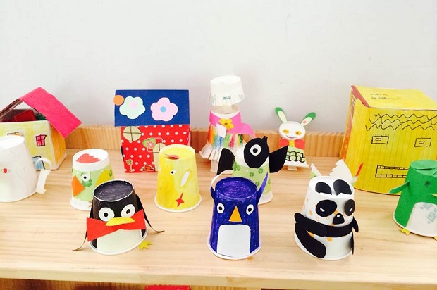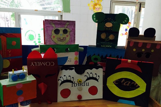 在教师们巧手绘制下:一只只可爱的卡通动物、一个个奇形怪状的机器人跃然纸袋上;毛线和布料组合的粘贴画 “美丽的春天”活灵活现;还有利用不同的纸杯制作成可爱的长颈鹿、活泼的小青蛙和凶猛的大狮子。这些利用废旧物品制作出来的作品,无论在构思还是制作上都颇具亮点,显示出教师们独具匠心的构思与精工细致的制作。此外作品还将环保与艺术及其蕴含的教育意义有机融为一体,我们将把这些玩具作品投入到日常游戏活动中,让孩子们在玩玩做做中体会创意的价值与快乐。