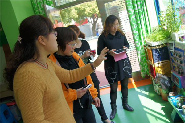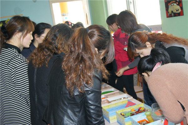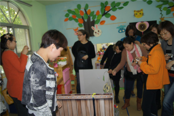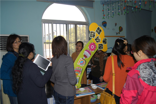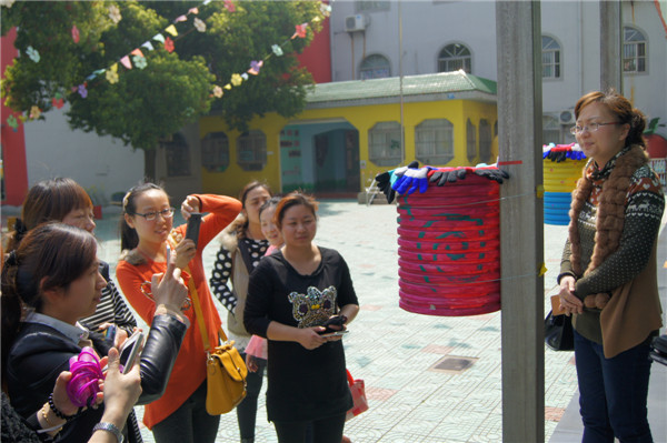 老师们走进儿家翠竹幼儿园,便被操场上的两组幼儿活动材料所吸引。在园长的引领介绍下,她们走进了各个班级,倾听班级老师的逐个介绍环境创设的构思和意图,并就环境创设原则进行了现身说法、现场指导,同时对老师们提出的疑惑意义耐心做了解答。在整个参观交流过程中,老师们迫不及待的用相机记录下一个个精彩的画面,并对儿家翠竹幼儿园“以幼儿为本”的环境创设理念,形象生动、材料丰富的区域游戏给予了高度评价。